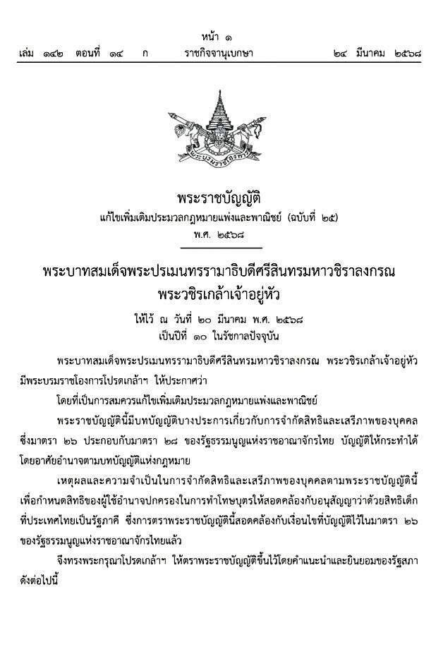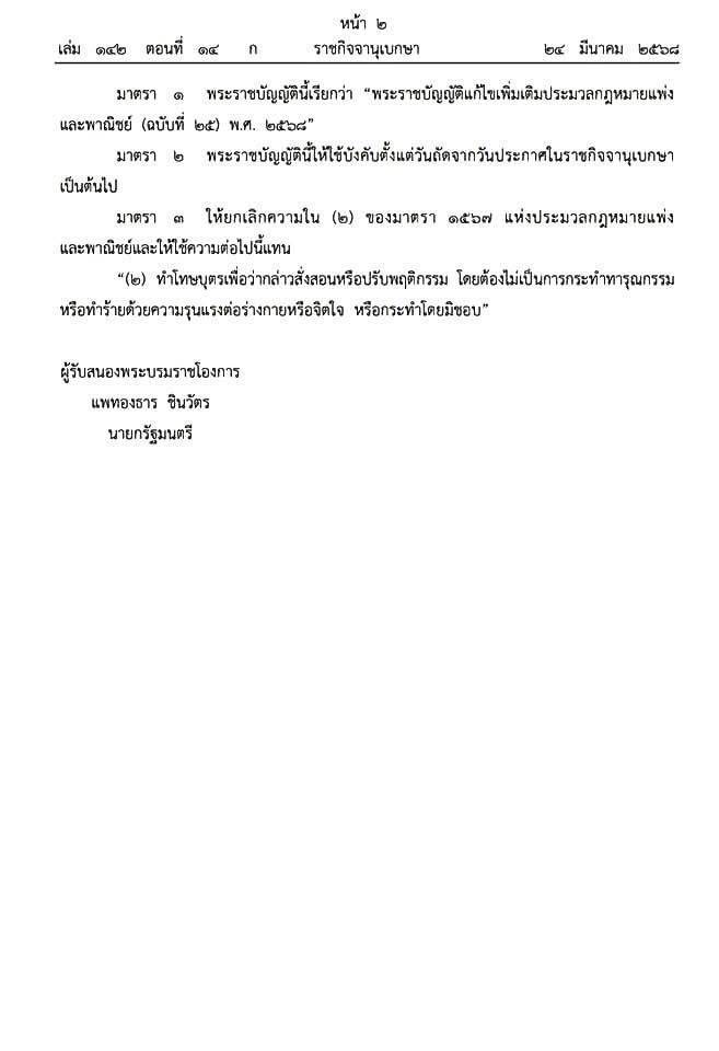 กฏหมายแพ่งแก้ไขใหม่ (ห้ามตีเด็ก) 26 มีนาคม 2568 โดย bomprasert / ข่าวประชาสัมพันธ์ จำนวนคนดู 24 FacebookFacebookXXLINELine