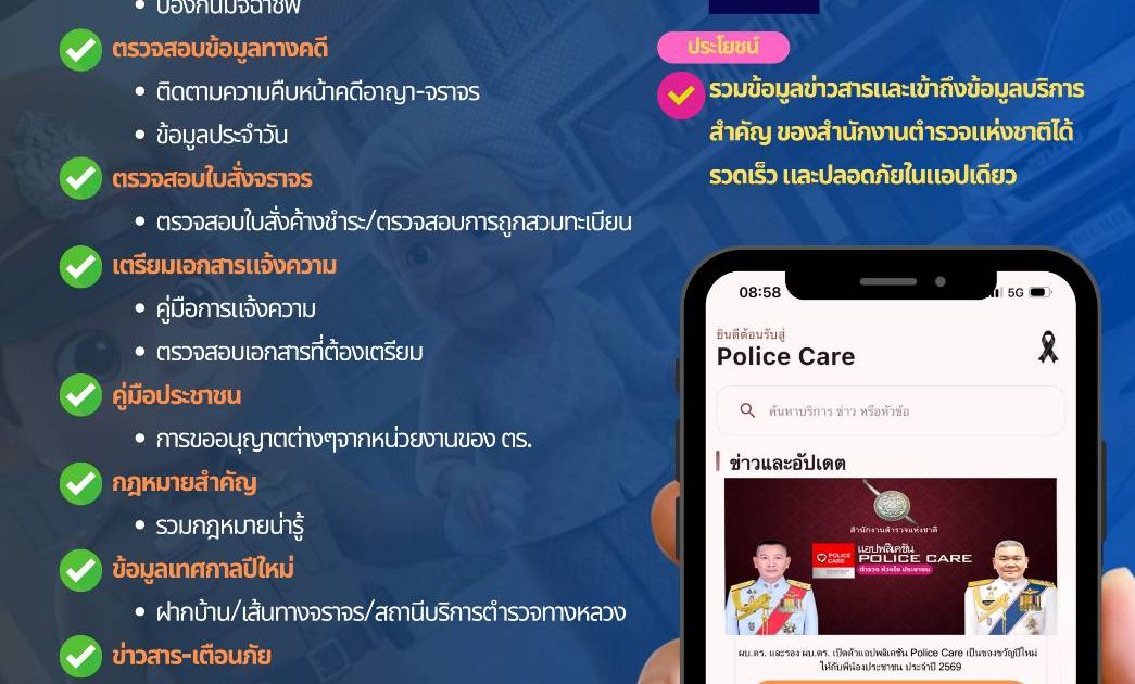 ประชาสัมพันธ์ แอป Police CARE 29 ธันวาคม 2568 โดย bomprasert / ข่าวประชาสัมพันธ์,ข่าวฝากประชาสัมพันธ์ จำนวนคนดู 15 FacebookFacebookXXLINELine