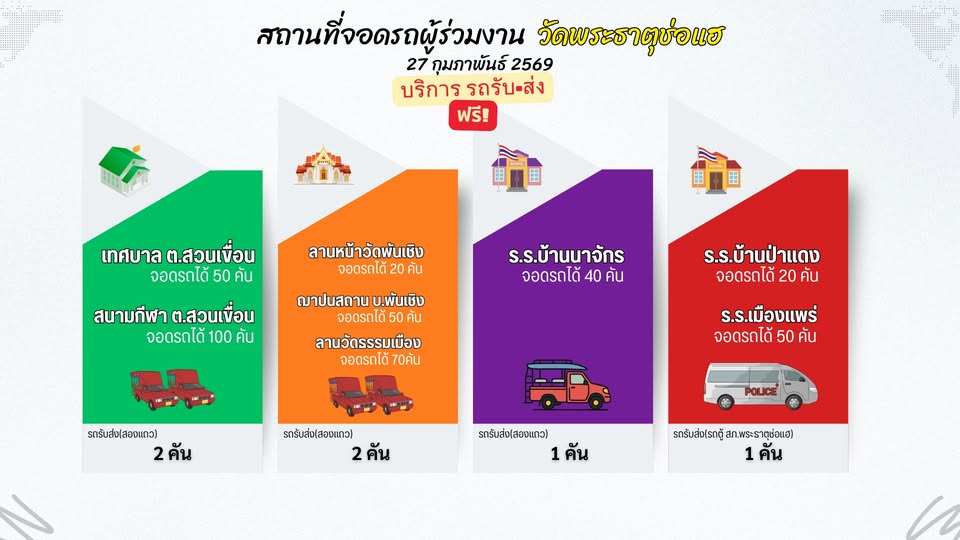 รถรับ-ส่ง ฟรี! ขอเชิญใช้บริการรถรับ-ส่ง เพื่อลดปัญหาการจราจรติดขัด